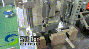 这里我们采用驰速双轴自动锁螺丝机,结合产品生产要求设计,可一次同时拧好2件产品,在锁付前可自动给螺丝涂上胶水,整个过程由设备自动完成,员工只需将待锁付的门把手放置在治具上即可。操作简单。