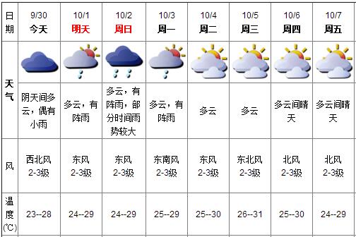 预计深圳地区国庆假期1-3日多云,有阵雨或雷阵雨: