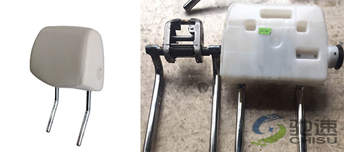 小汽车座椅成本较高,这里客户产品主要是生产汽车各类真皮座椅,下图是汽车前排座椅头枕,其内部骨架需要通过螺丝紧固。